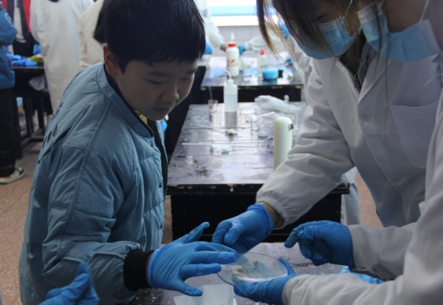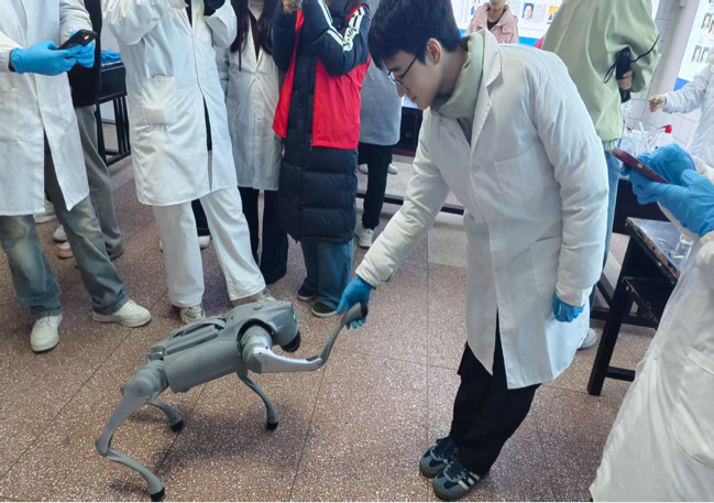本次活动采用线上线下结合方式,累计参与人数超过2000人。现场设置了多个趣味化学实验项目,如“冰晶蓝玫瑰”“大象牙膏”“魔力棒棒糖”等。蓝色晶体在溶液中舒展成玫瑰形态,泡沫如喷泉般涌出,引发观众阵阵惊叹。人工智能与大数据学院带来的宇树机器人和机器狗成为现场焦点,它们灵活穿梭于实验区,配合实验节奏做出摇尾巴、转圈等动作,遇到小朋友还会主动展示机械关节,增添了科技与童趣交融的活跃氛围。活动以“动手做、趣味学”为特色,打破了“科学很遥远”的刻板印象,激发了不同年龄参与者对化学的兴趣,也展现出高校在科普教育与跨学科联动方面的平台优势。