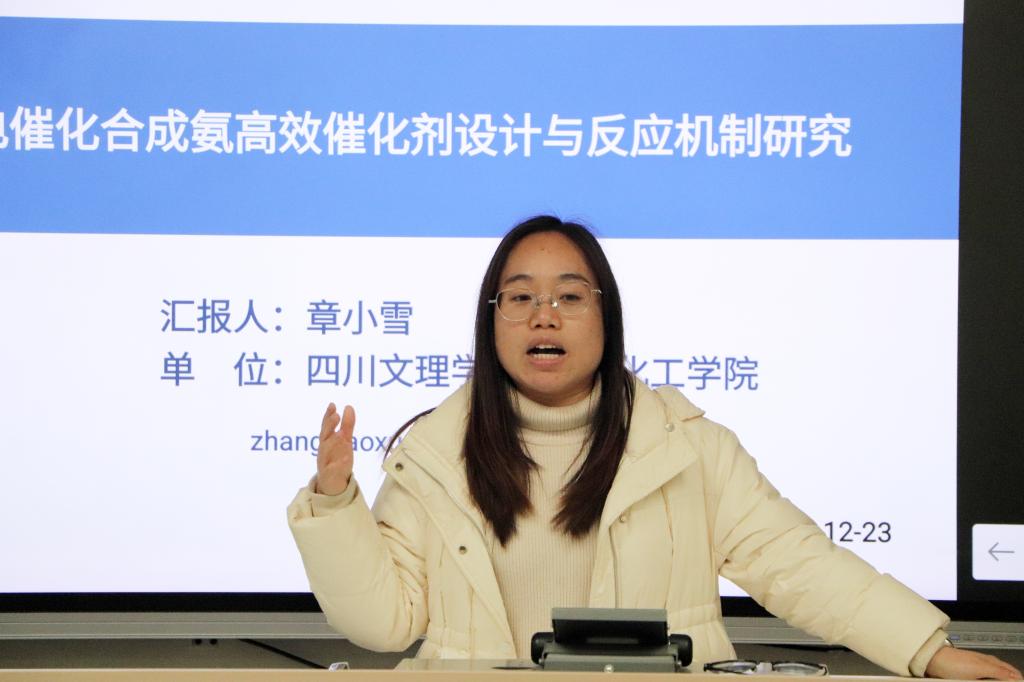 为搭建学术交流平台,分享最新研究成果与技术进展,促进学科交叉融合,2025年12月23日,化学化工学院于南坝校区“一站式”戛云社区开展主题为“电催化合成氨高效催化剂设计与反应机制研究”的座谈会。本次座谈会由章小雪博士担任主讲,共22名学生参与本次座谈会。