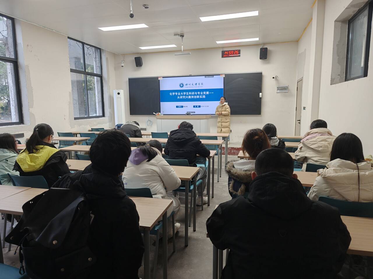 为深化化工学子对科研活动与专业竞赛内在关联的认知,明晰研究兴趣向创新实践转化的有效路径,2025年12月30日,化学化工学院于南坝校区“一站式”戛云社区,举办“大学生科研与专业竞赛——从研究兴趣到创新实践”主题座谈会。本次座谈会由熊宗莉博士担任主讲,18名同学参与本次座谈会。