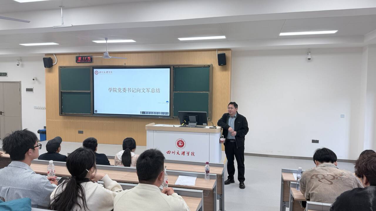 最后,向文军书记作总结讲话。他对同学们的考研成绩给予了肯定,强调学院将持续为考研学子提供全方位支持与服务,希望全体考生坚定信心、认真备考,以最佳状态迎接复试挑战,在接下来的考试中取得优异成绩,实现人生理想。同时,他也叮嘱未选择考研的同学,要认清就业形势、明确求职方向,主动利用学院提供的就业指导、招聘信息等资源,合理规划职业发展,学院也将全力搭建就业平台,助力每一位同学顺利就业、实现自身价值。